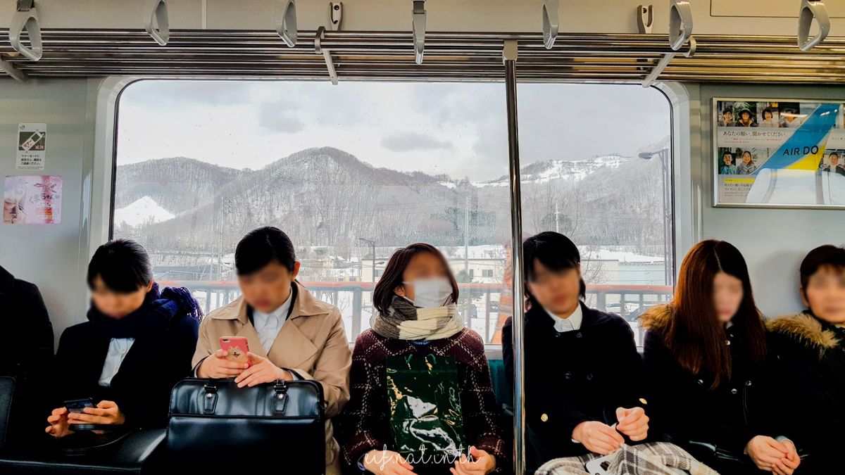 ครบทีมแล้ว เข้าเมืองกัน เราเติมเงินเข้าบัตร Suica และใช้ตลอดที่อยู่ฮอกไกโด นั่งรถไฟ JR เข้าเมืองเที่ยวละ 1,070 เยน ใช้เวลาประมาณ 40 นาทีถึง Sapporo Station และต่อ Subway ไปที่สถานี Hosui susukino Station นั่งมาเพียง 2 สถานี