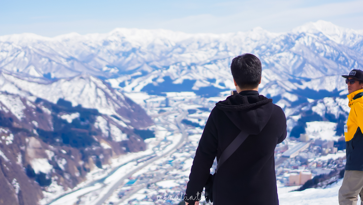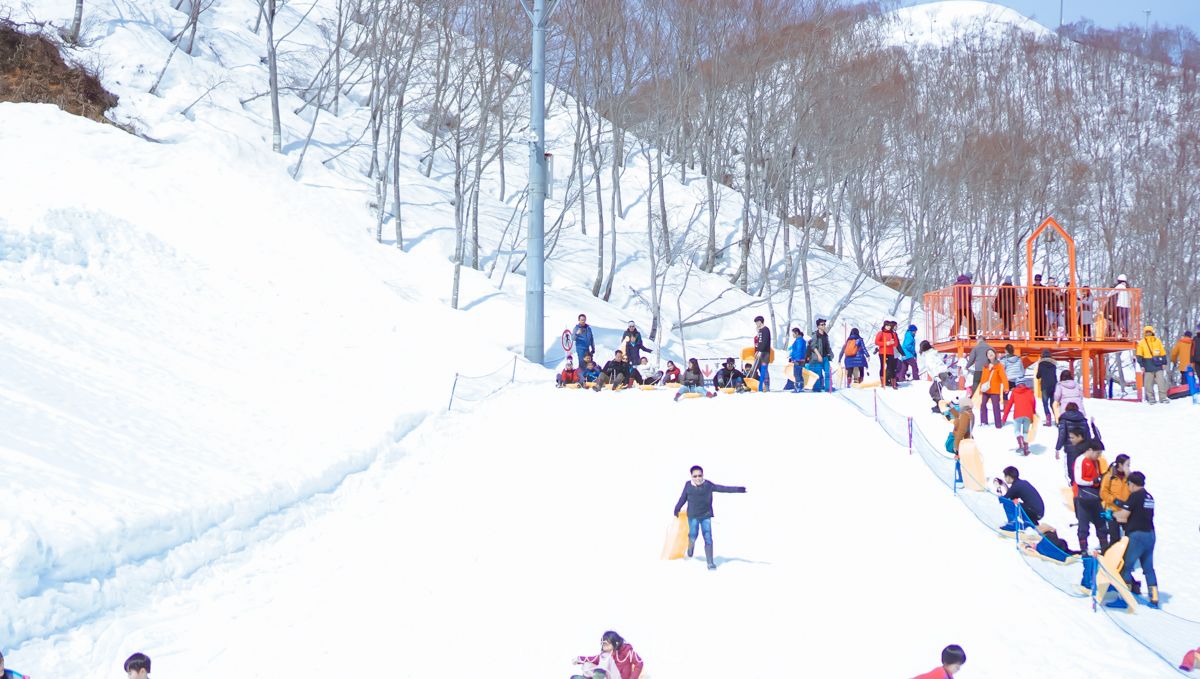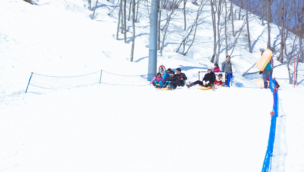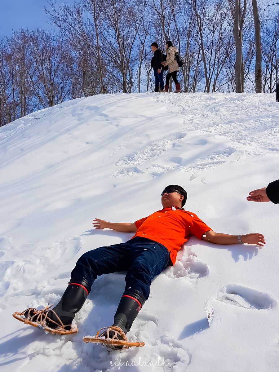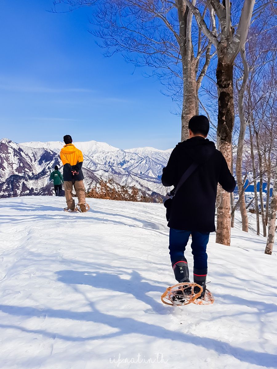 พอถึง 12:55 น. ตามเวลานัดหมาย เขาจะพาเราไปด้านนอกอาคารและผูกรองเท้าให้ รอบนี้มีผู้ร่วมทัวร์ประมาณ 20 คน มีทั้งไทย จีน ฝรั่ง รองเท้านี่ใส่แล้วต้องเดินขาถ่างอ่ะ เพราะเดี๋ยวเหยียบเท้าตัวเอง ? เส้นทางเดินไปกลับ คิดว่าใกล้ๆ แต่กินเวลาไป 1 ชั่วโมง ไม่น่าเชื่อ … และถ้าไม่ได้มาตรงนี้ ทริป Gala-Yuzawa ก็คงไม่มีรูปสวยๆ เพราะตรง Cheers Station คนเยอะมาก เรามาตรงกับวันหยุดด้วยเนอะ