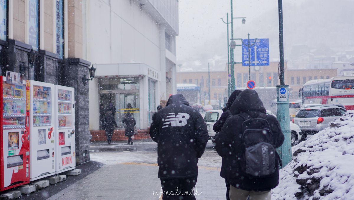 ระหว่างที่กำลังเดินกลับ หิมะเริ่มตกหนักมาก ทางนี้ก็กลัวพายุหิมะแล้วตกเครื่องไง กลัวไม่ได้กลับโตเกียว ก็เลยตกลงว่ากลับกันเถอะ ?