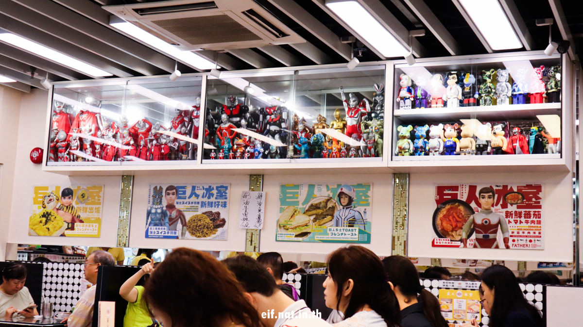 เสร็จจากวัด เราจะไปดิสนีย์แลนด์กัน ประสบปัญหาไม่รู้จะกินอะไรอีกแล้ว โผล่ออกมาที่ MTR Prince Edward จะกิน Mc ก็ไม่มีเมนูแฮมเบอร์เกอร์ เลยมาเจอร้านข้างๆ The Giant Cafe เป็นร้านอาหารที่ประดับประดาไปด้วยโมเดลของเล่น และโปสเตอร์ยอดมนุษย์ คิดอะไรไม่ออกก็มากินนี่ ไม่แพง ได้เยอะด้วย อิ่มมากกก นี่สั่งเป็นปลาชุบแป้งทอด+แกงกะหรี่ และเป็นข้าวหน้าซอสมะเขือเทศอะไรสักอย่าง รสชาติดีเลย